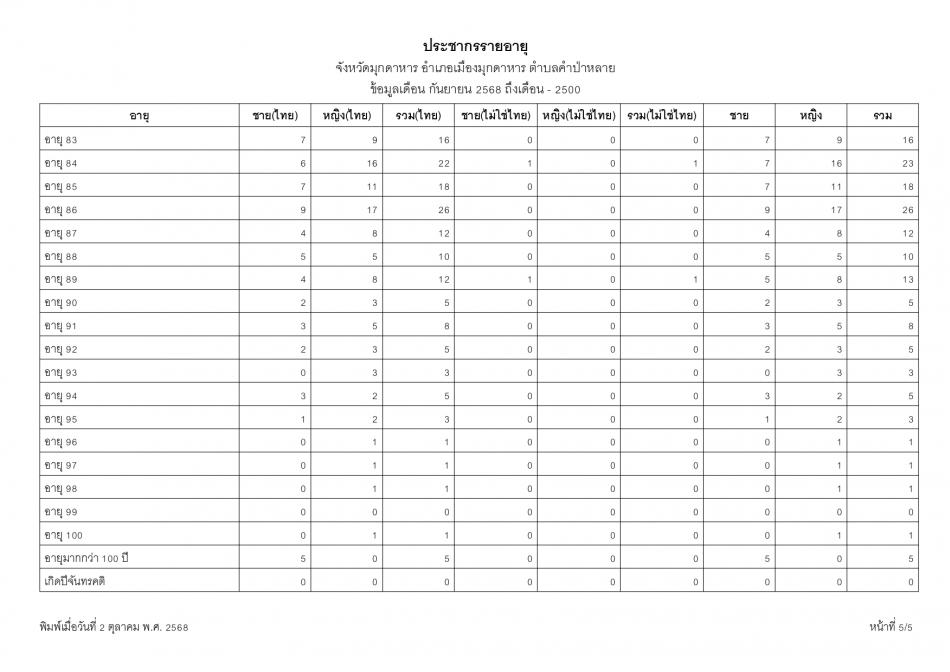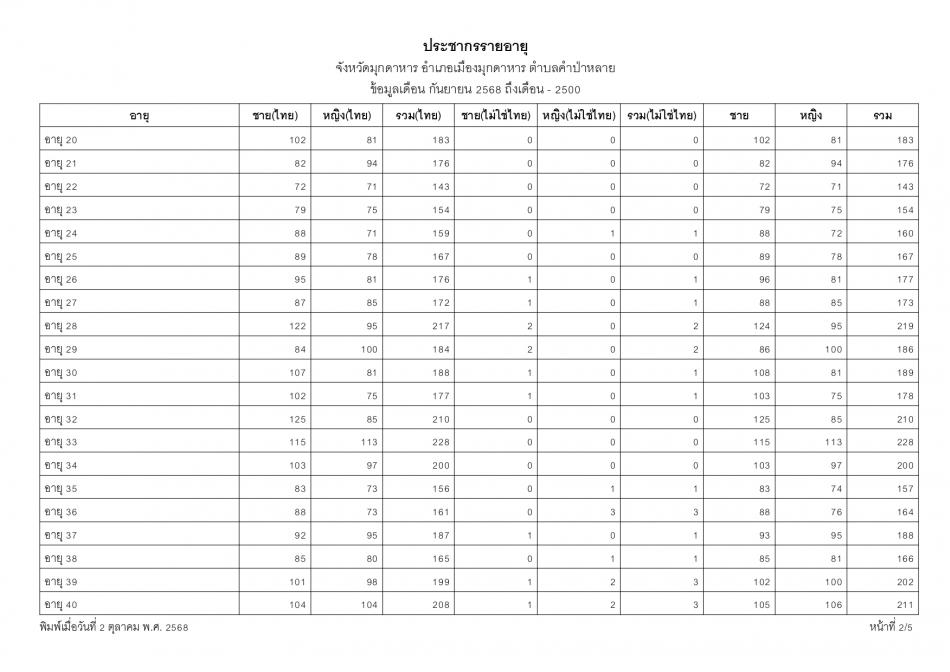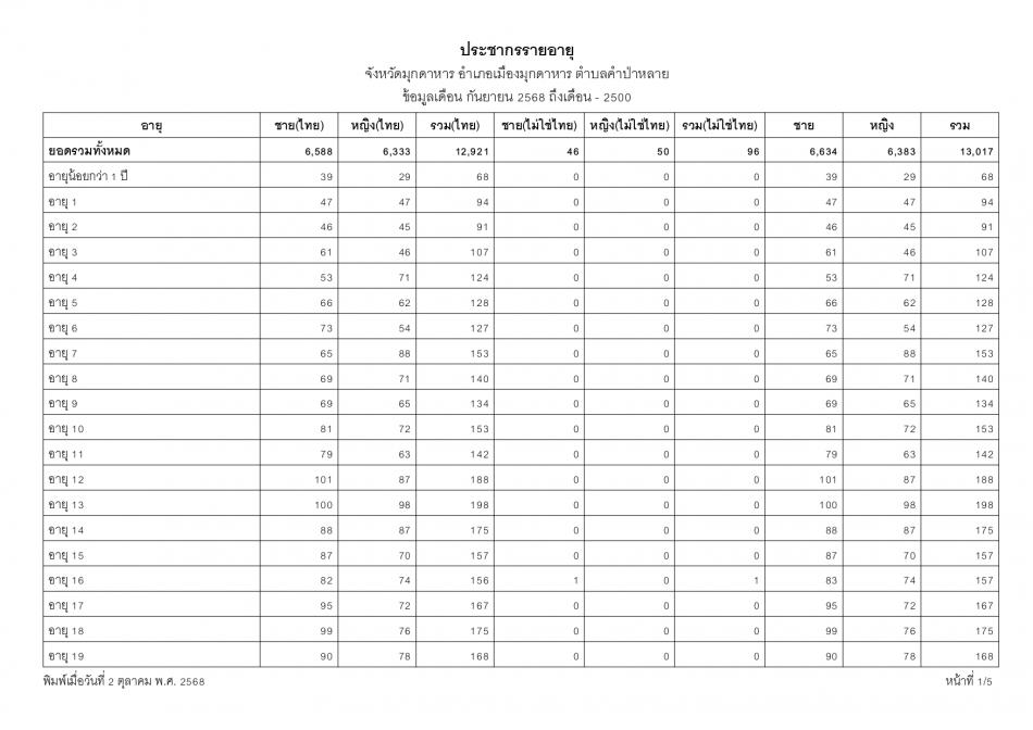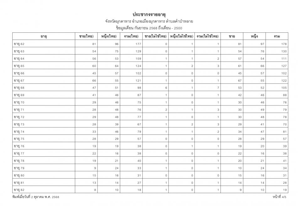 ช่วงอายุและจำนวนประชากร