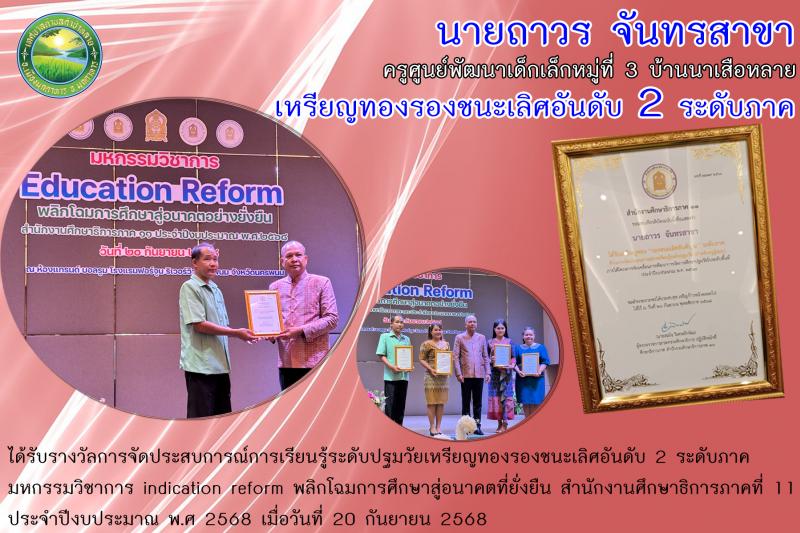 รางวัลการจัดประสบการณ์การเรียนรู้ระดับปฐมวัยเหรียญทองรองชนะเลิศอันดับ 2 ระดับภาค [23 กันยายน 2568]