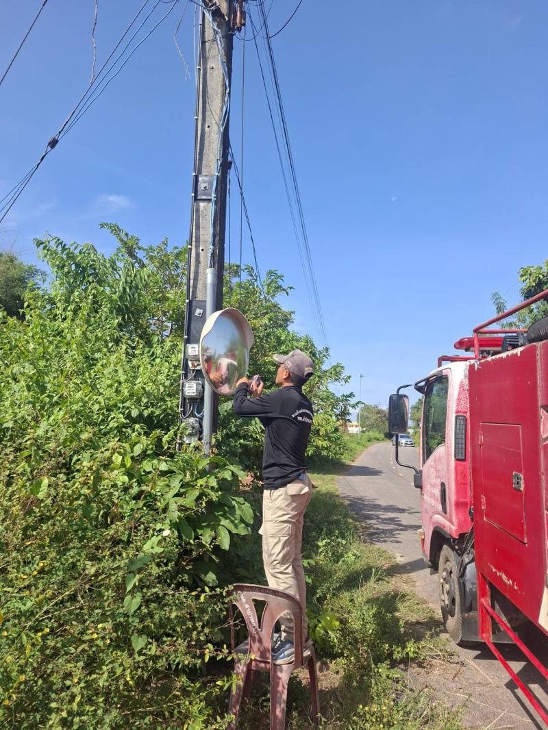 งานป้องกันฯ ทำความสะอาดกระจกโค้งจราจรตามทางแยก หมู่ที่ 1 หมู่ที่ 12 และหมู่ที่ 16 [12 พฤศจิกายน 2568]