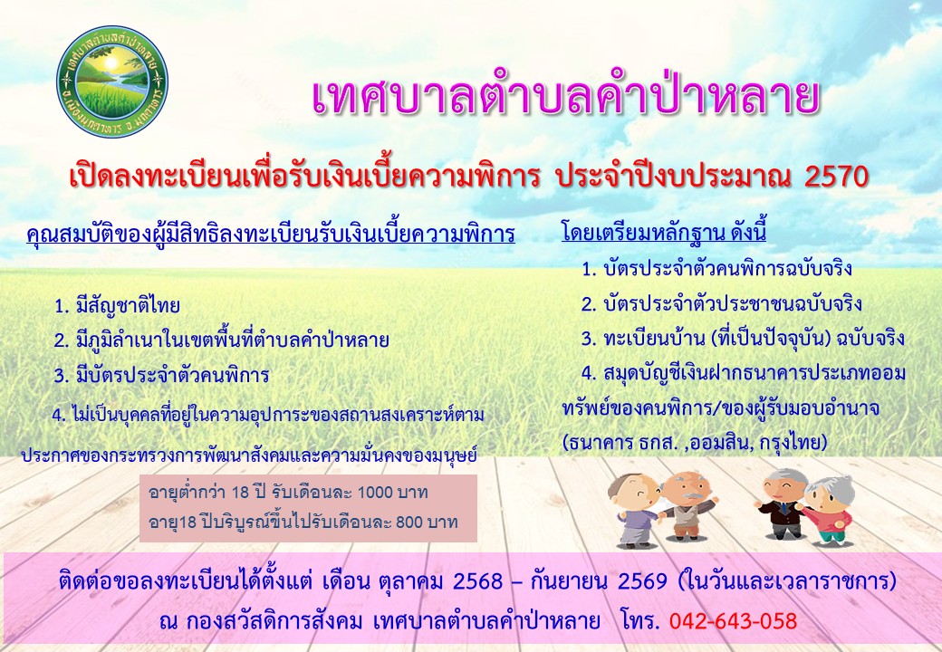 เปิดลงทะเบียนเพื่อรับเงินเบี้ยความพิการ ประจำปีงบประมาณ 2570